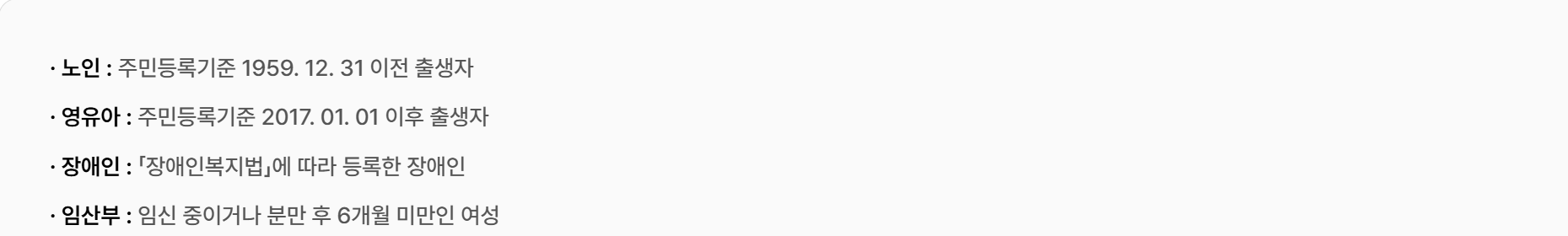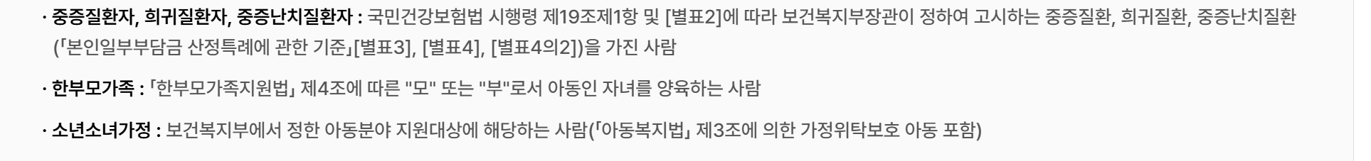 제외 대상: 세대원 모두가 보장시설 수급자인 경우에는 지원 대상에서 제외됩니다.