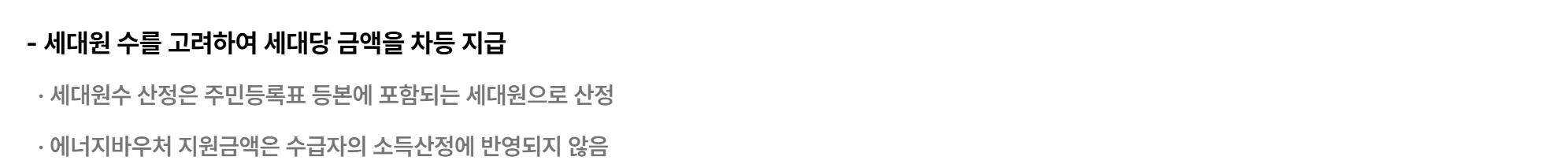 소득 기준: 에너지바우처는 국민기초생활 보장법에 따른 기초생활수급자 중 생계급여, 의료급여, 주거급여, 교육급여 수급자에게 지원됩니다.