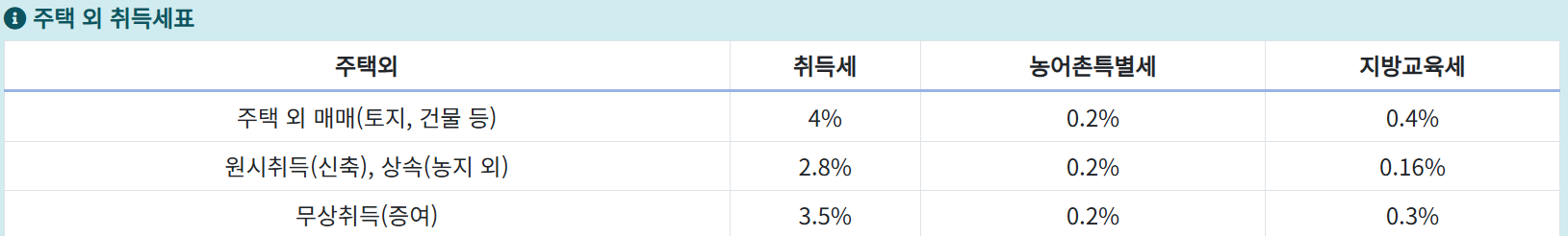 취득세의 기본 세율은 다음과 같습니다.