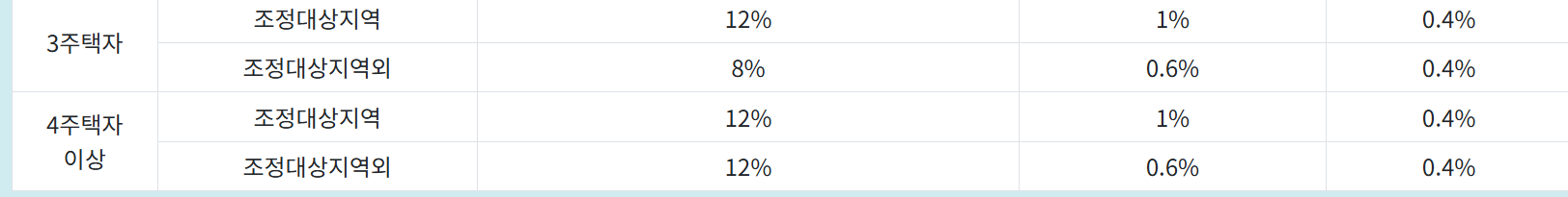 3주택 이상 보유자: 조정대상지역의 경우 12%